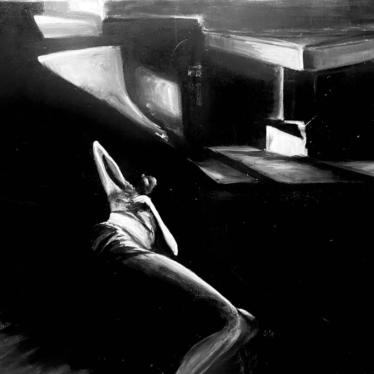 A series of expressive figurative works exploring form, movement, and emotional depth through color, shadow, and abstraction.